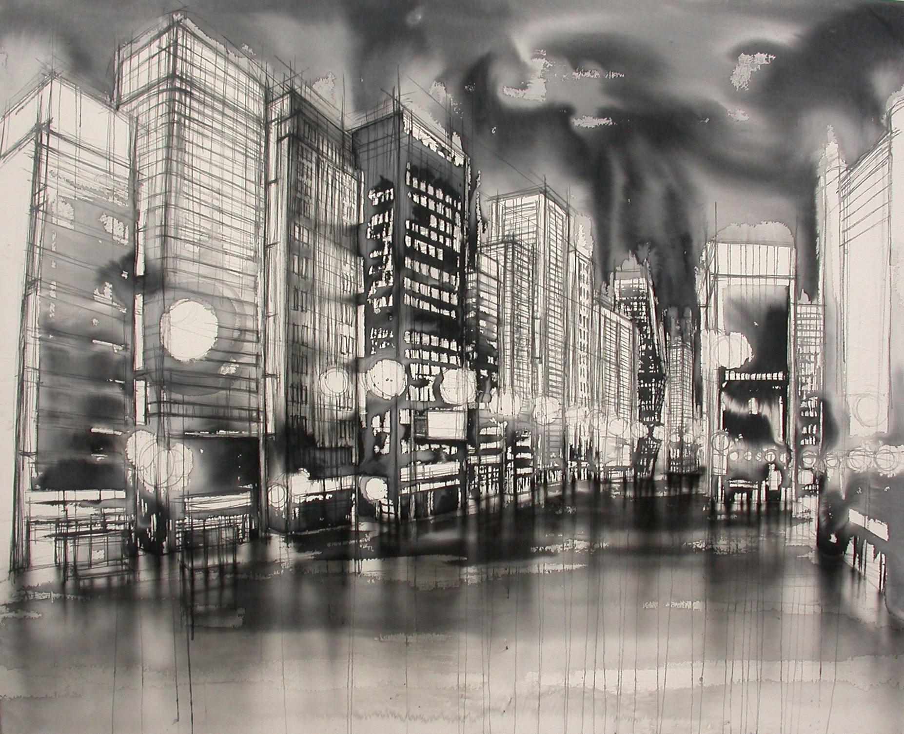 도시의 밤 a night of city, 캔버스천에 수묵 Korean ink on Canvas, 130x162cm, 2003